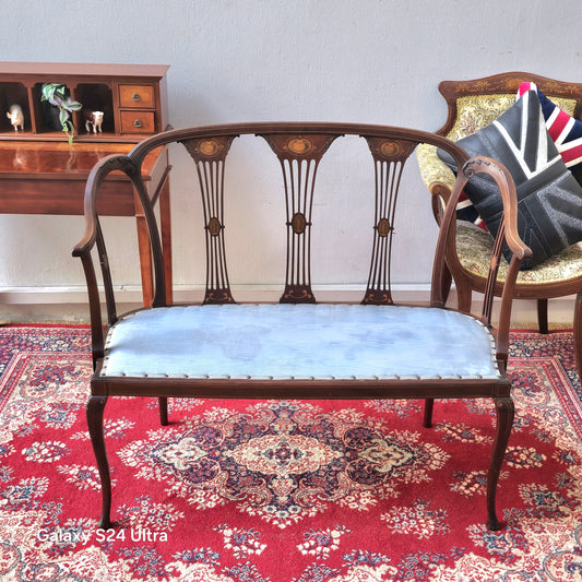 EDWARDIAN MARQUETRY INLAID MAHOGANY SINGLE CHAIRS, with pierced splat back