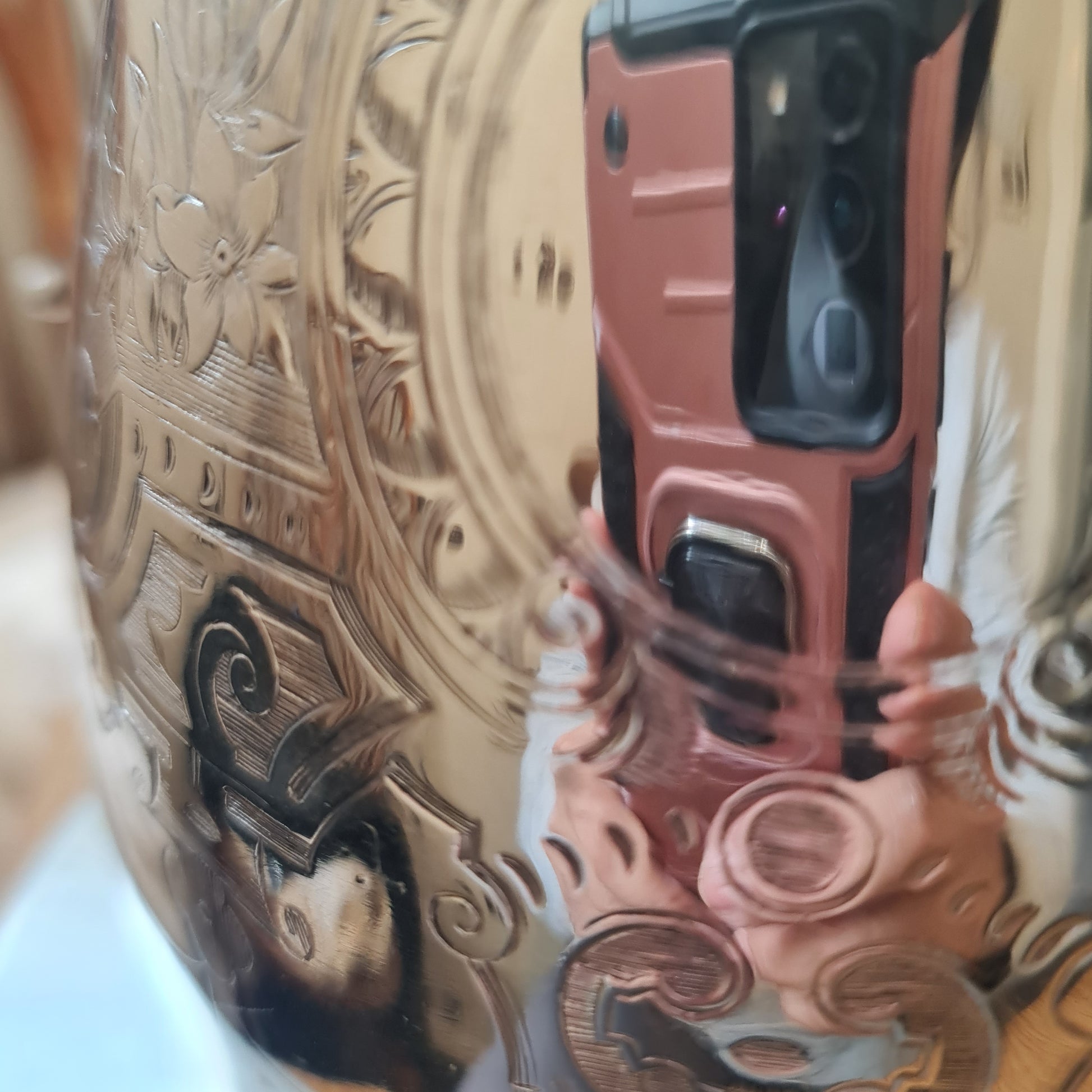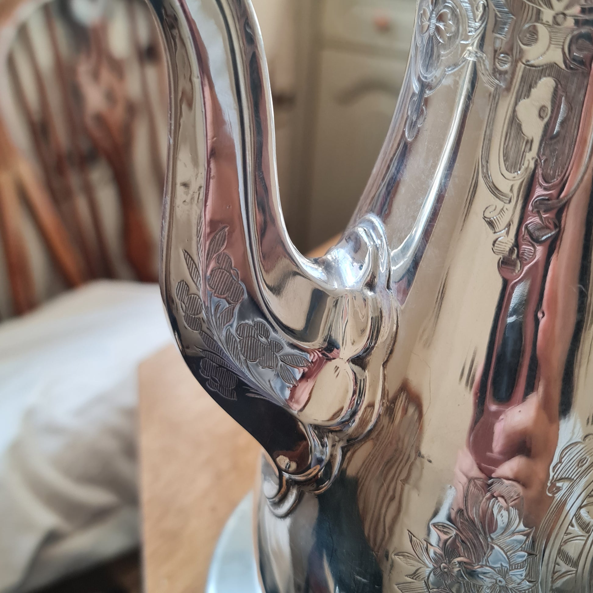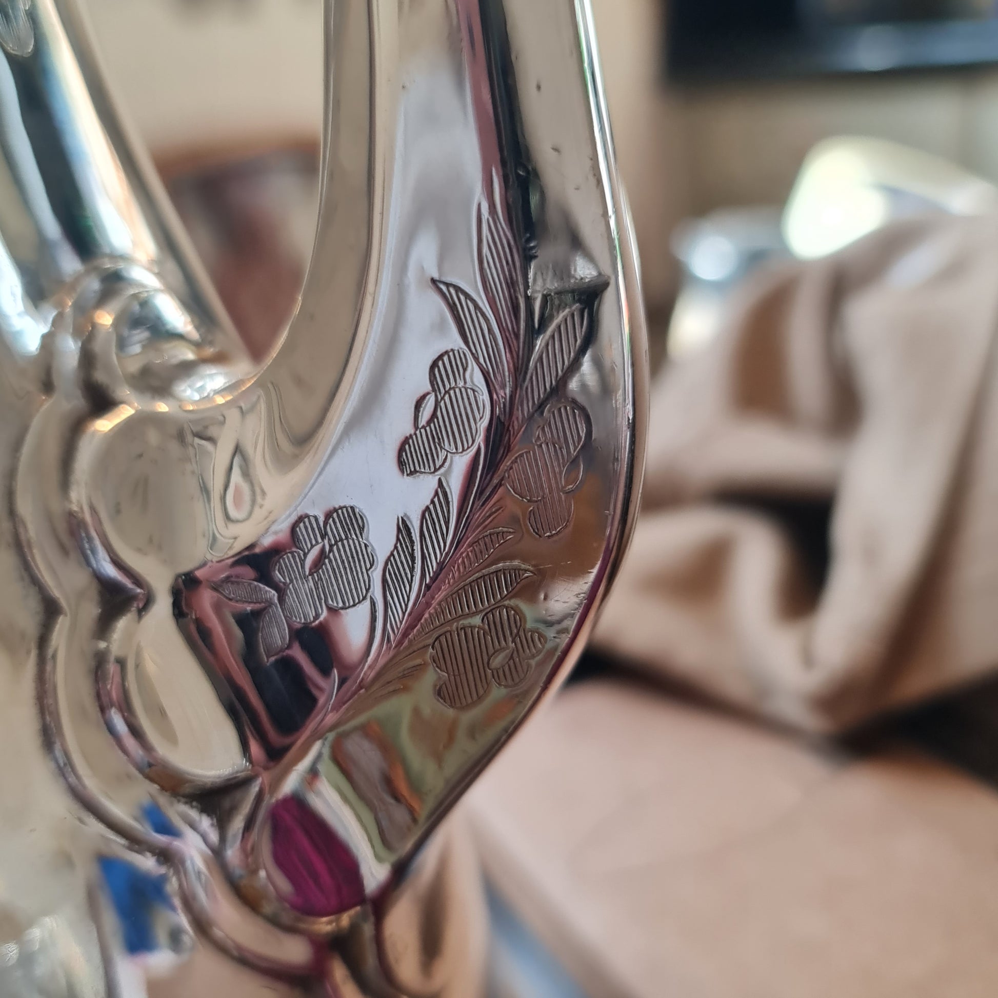 This particular style features a baluster shape, hinged lid, and intricate engraved decoration
