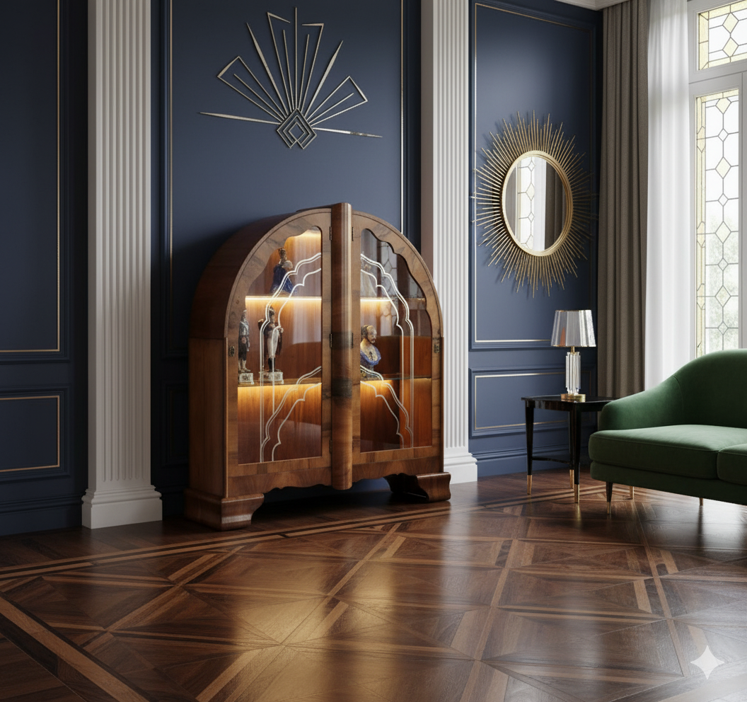 RARE Antique Art Deco burr Walnut display cabinet, circa 1920.