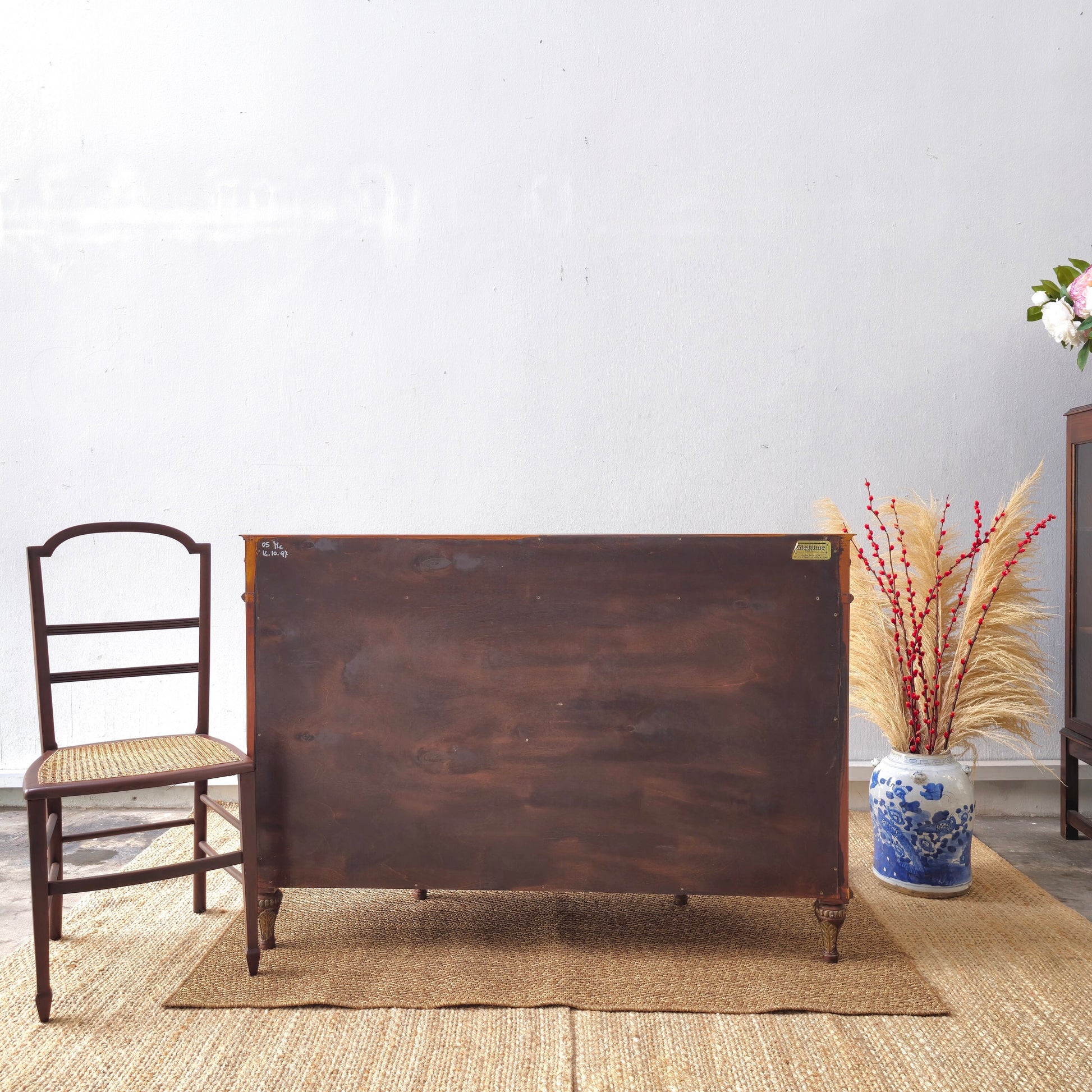 A stunning statement piece, this Louis XVI-style demilune commode features a luxurious black marble top, exquisite gilt-bronze ormolu mounts, and richly veneered panels adorned with neoclassical motifs and garlands. The elegant half-moon shape and intricate detailing speak to 19th to early 20th century French craftsmanship, making it perfect for a grand entryway, formal hallway, or refined living space. Both functional and ornamental, this commode offers timeless opulence with historical flair—an heirloom-quality piece that elevates any classic interior.
