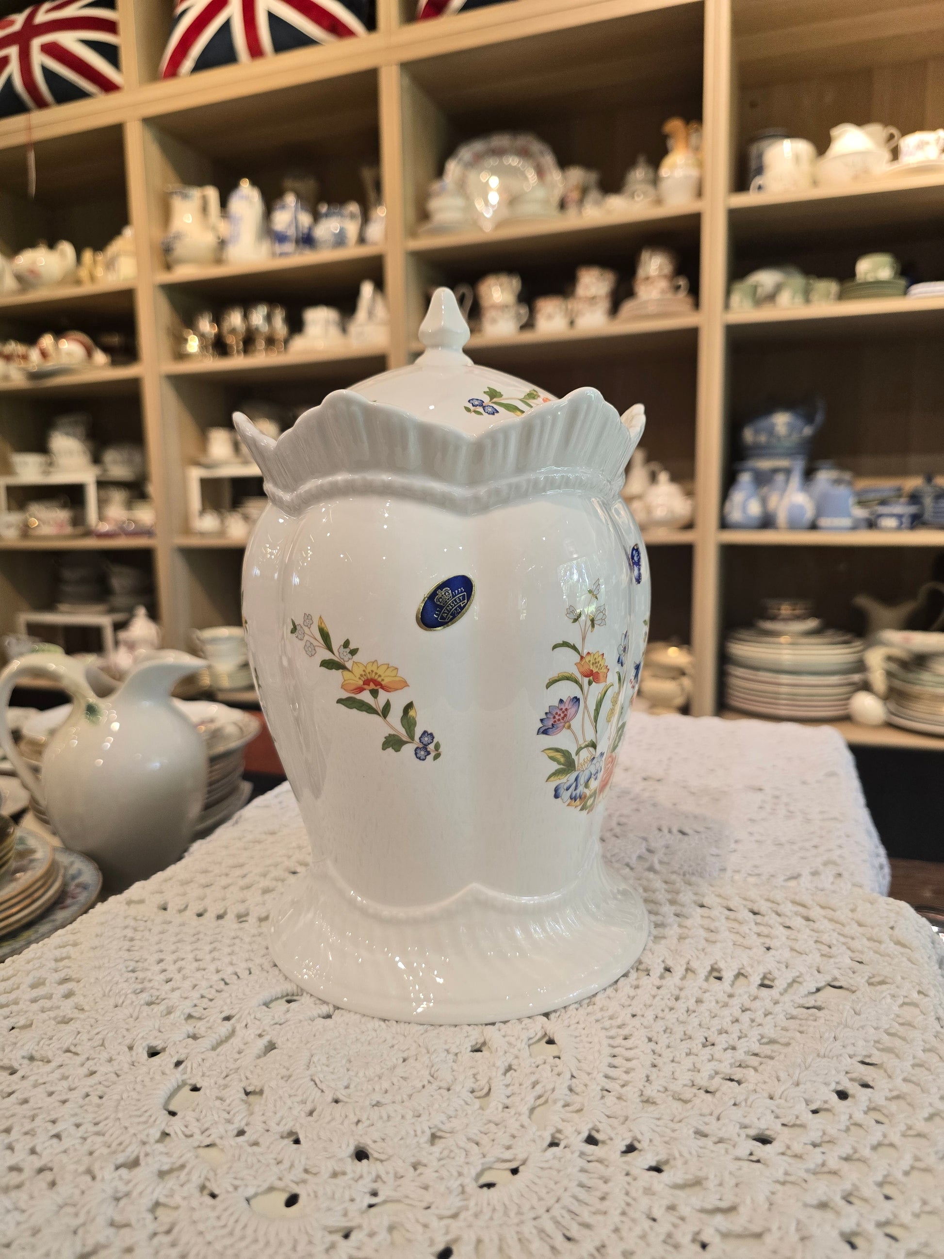 Add a touch of charm to your décor with this stunning Aynsley "Cottage Garden" Ginger Pot. Featuring a delightful floral pattern inspired by traditional English gardens, this fine bone china piece is a perfect blend of elegance and functionality.