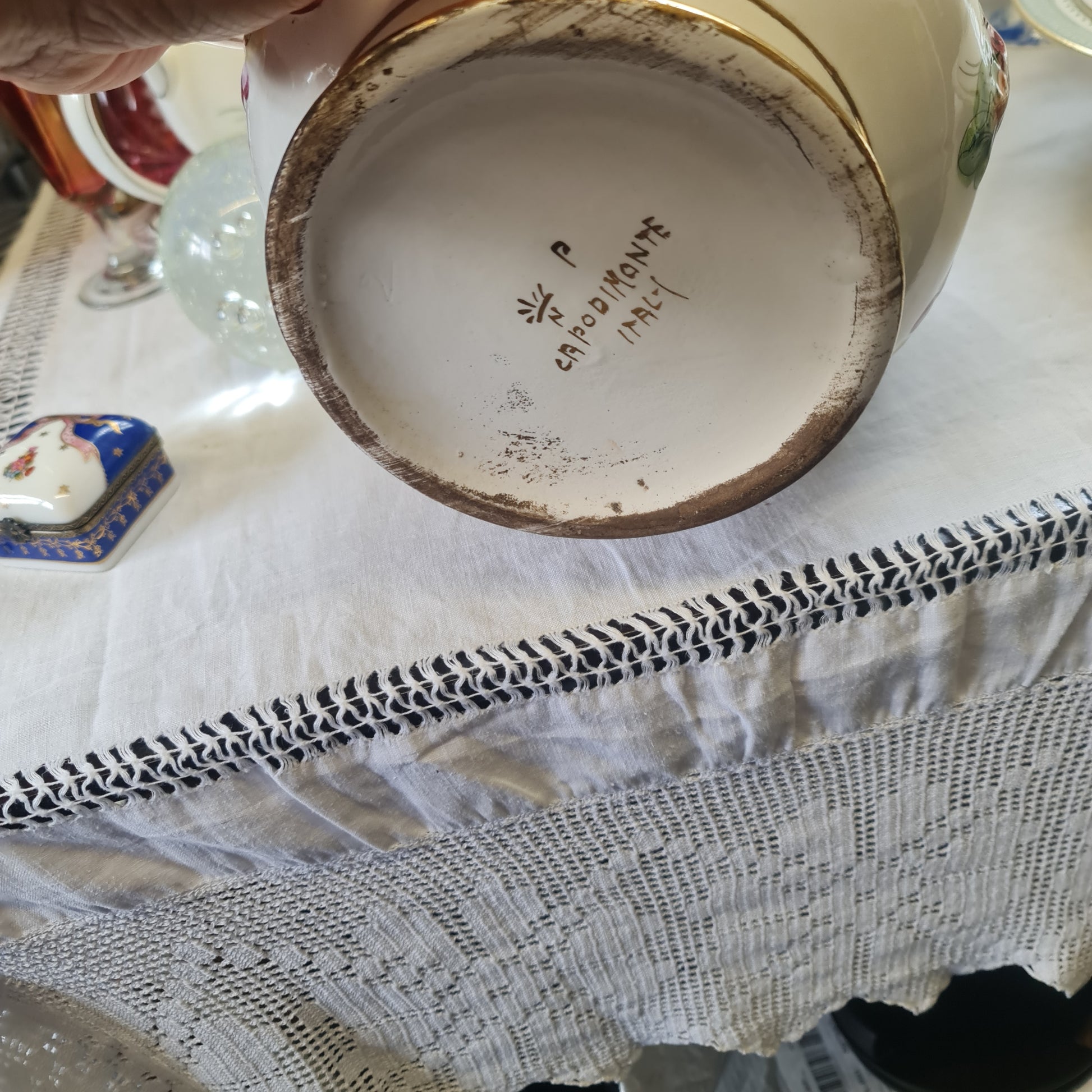 CAPODIMONTE rare Handmade and handpainted plant pot
