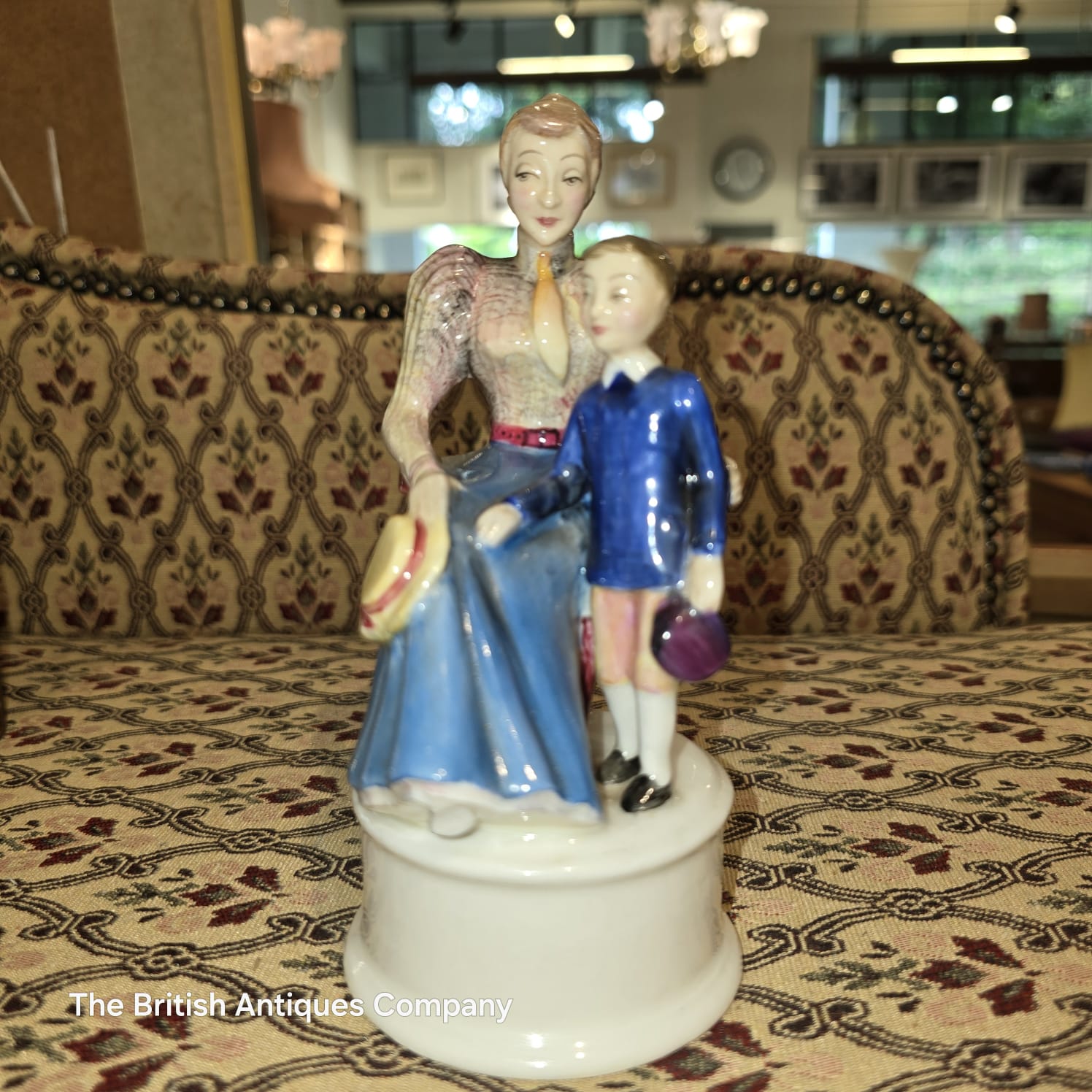 This is a beautiful porcelain figurine depicting an elegant mother and her young son in a tender moment.