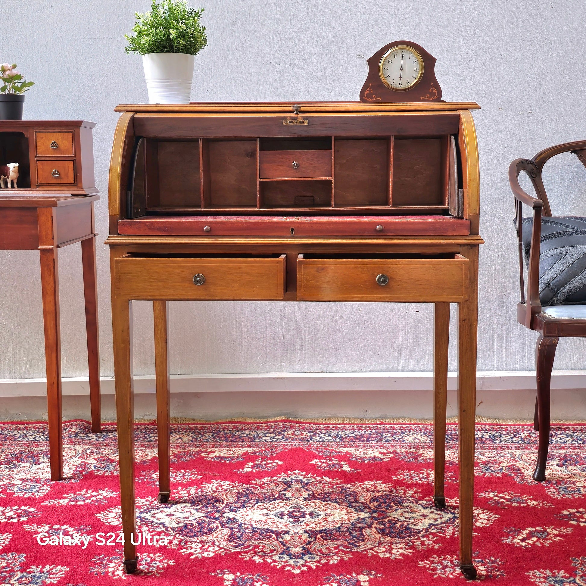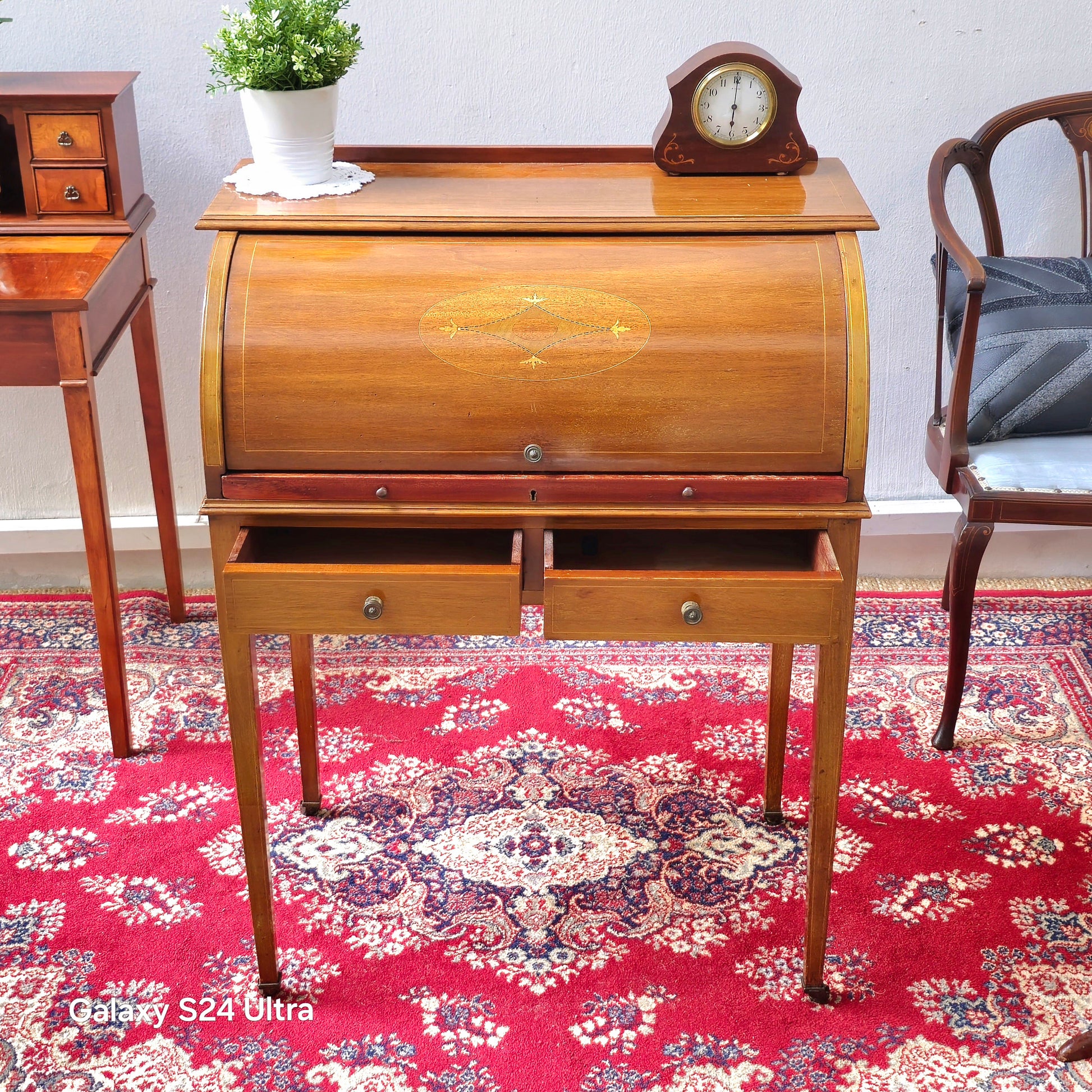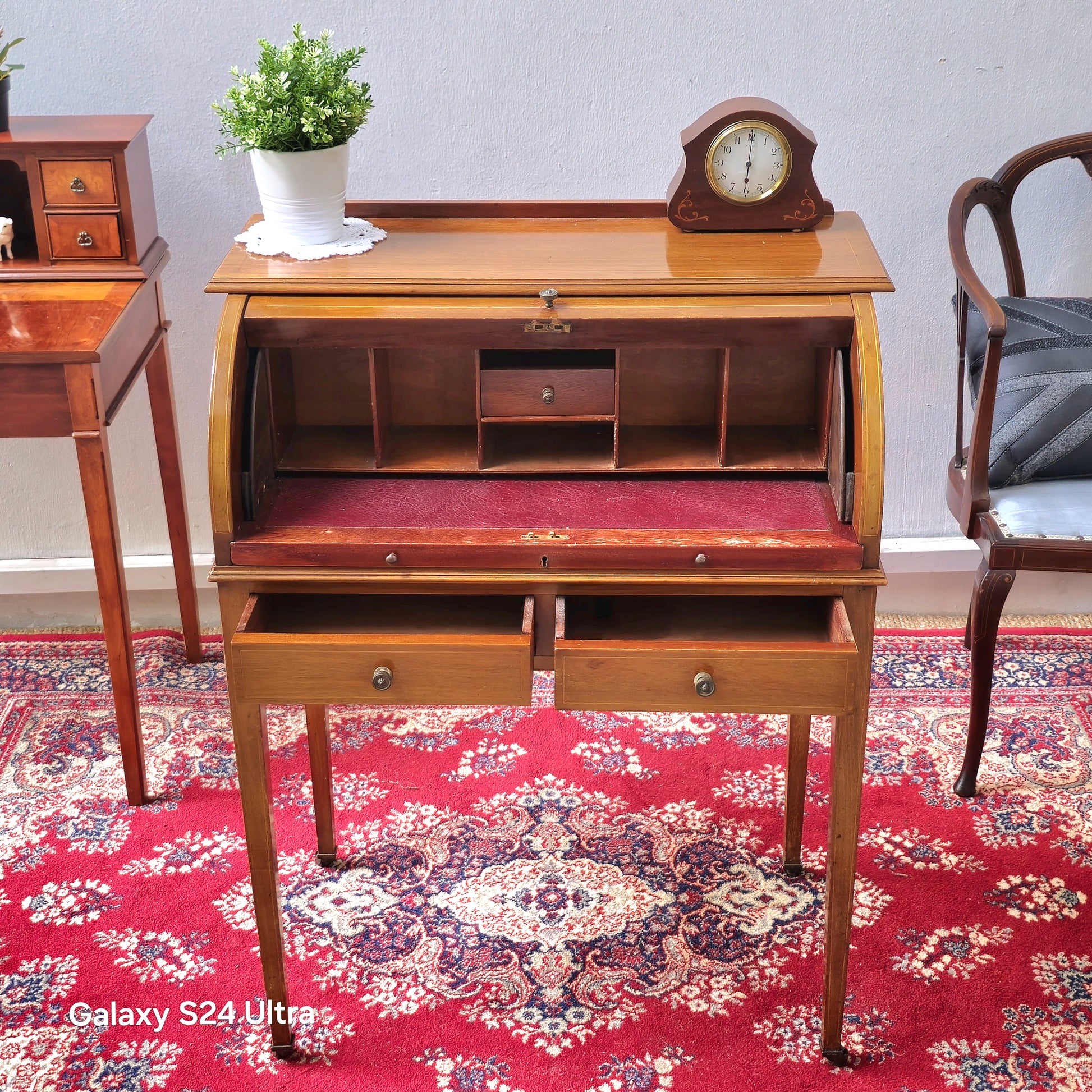 Embrace Edwardian Elegance with this Charming Mahogany Roll-Top Desk