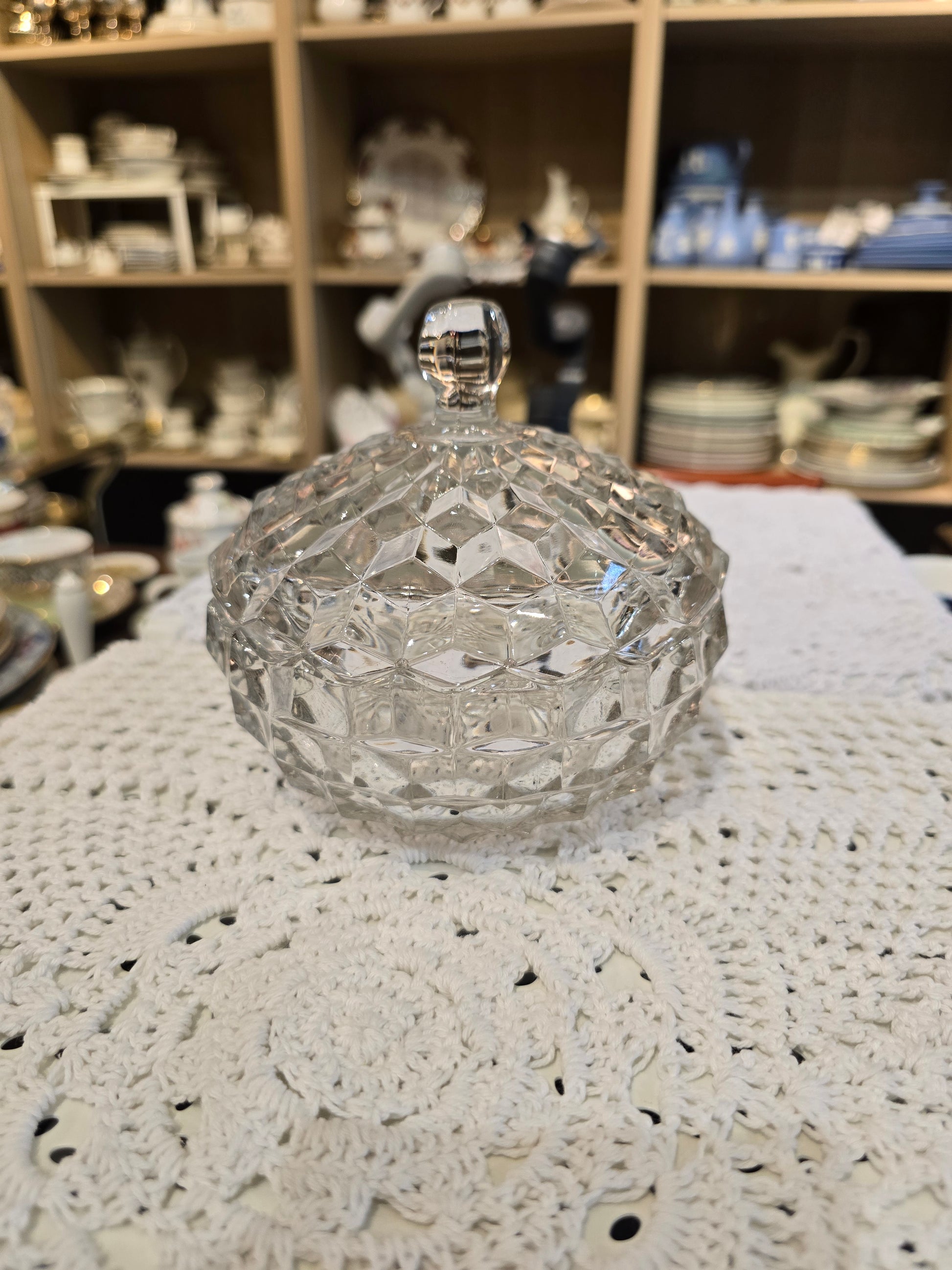 Fostoria American Clear Candy pressed glass Dish & Lid