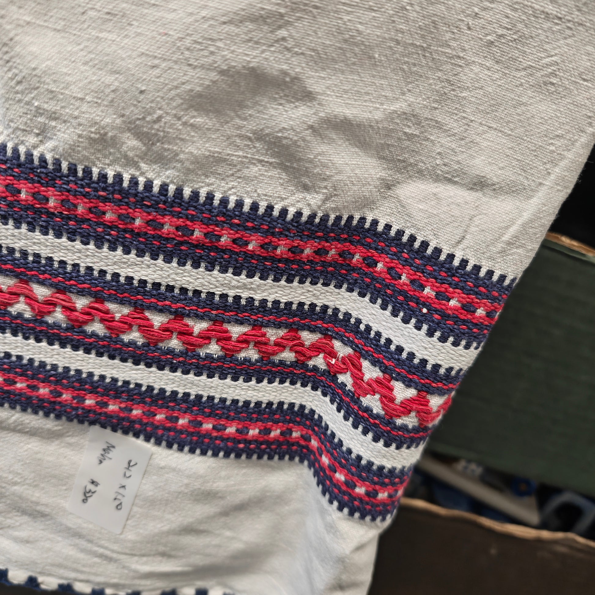 Gorgeous vintage hand stitch cotton linen table cloth 212 x 150cm