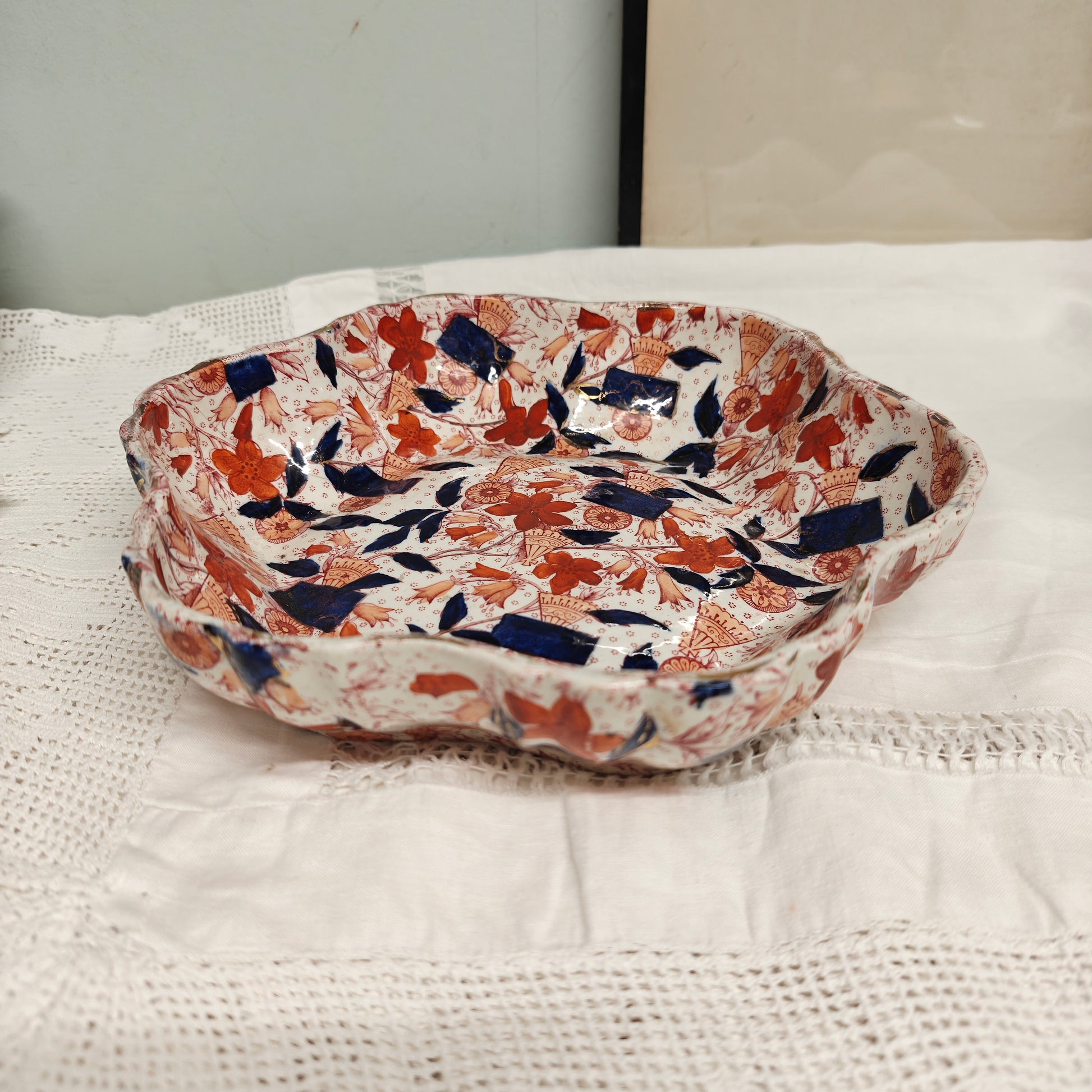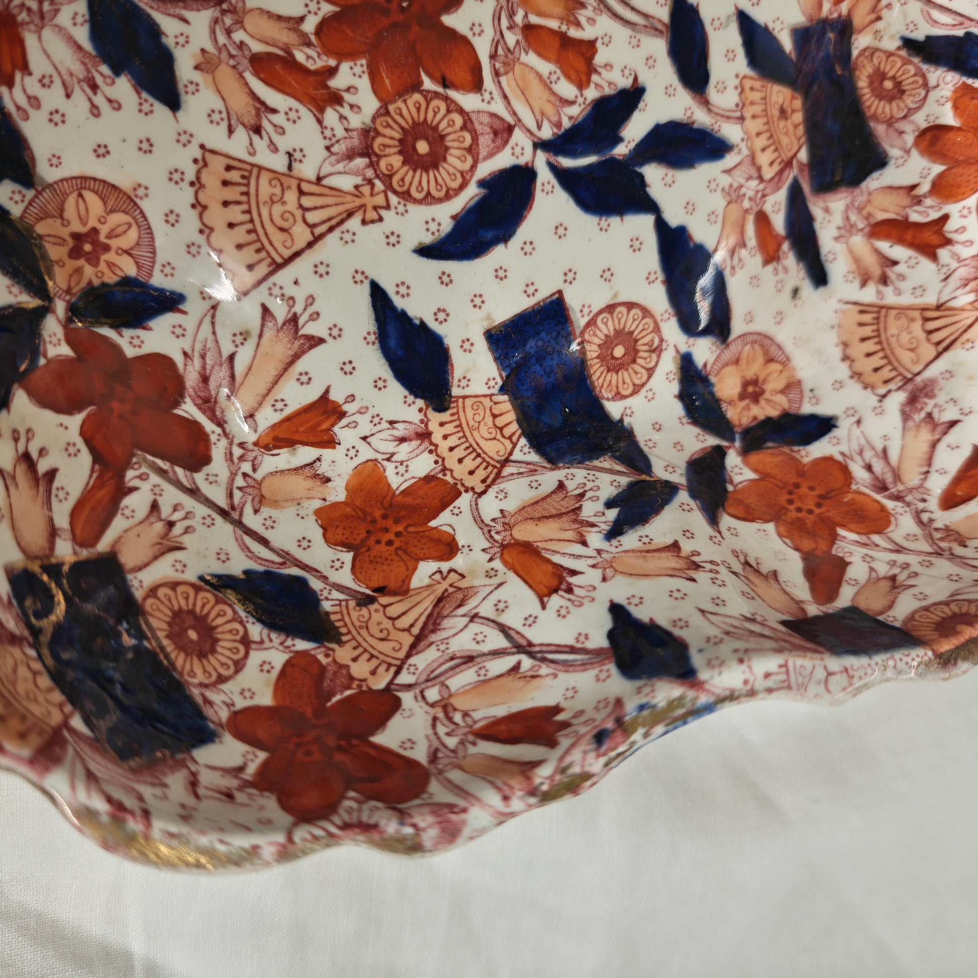This is an antique English ceramic bowl, likely from the Victorian era, made by Hollinshead & Kirkham (H&K Tunstall) in a Japanese Imari style pattern.