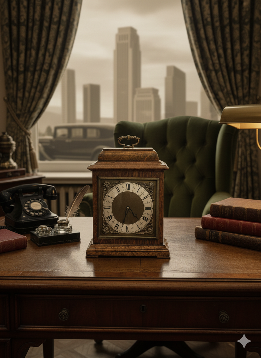 Antique Wooden Cabinet Clock with Brass Handle