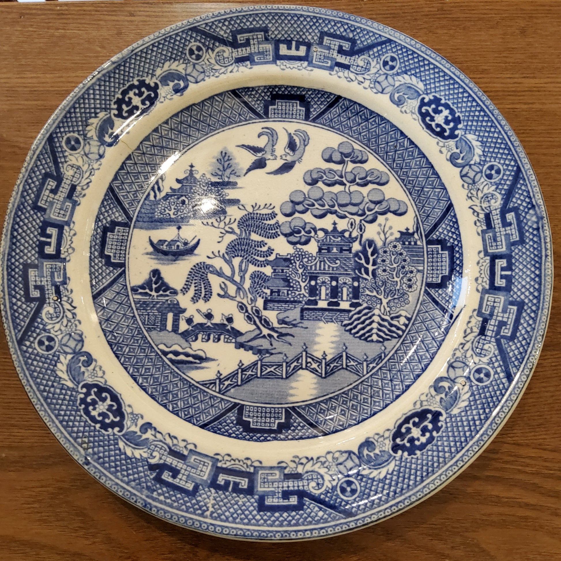 c1820 Blue Willow Antique Dinner Plate