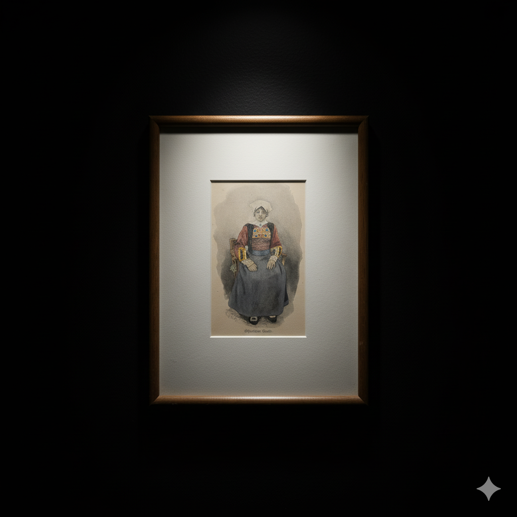 The print has been coloured by hand, a common practice for fashion plates, adding a subtle vibrancy and highlighting the details of the garment and the figure. 1 The text "PARIS" and "BALL DRESS" are printed at the bottom of the image, indicating its origin and the style of clothing. Presented in a simple frame with a light-coloured matting, this vintage fashion plate offers a glimpse into historical fashion and the artistry of early illustration.